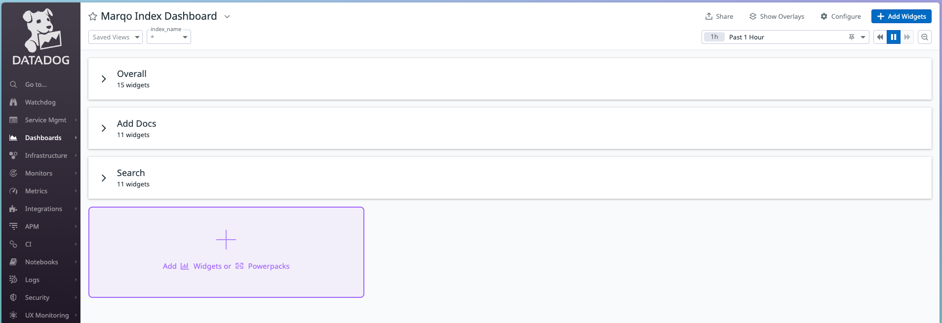 You have now successfully setup a dashboard for all indexes in your Marqo Cloud account.