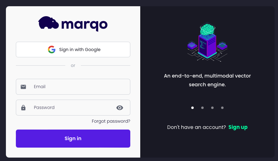 When doing so, you will be greeted with our Marqo Cloud UI: