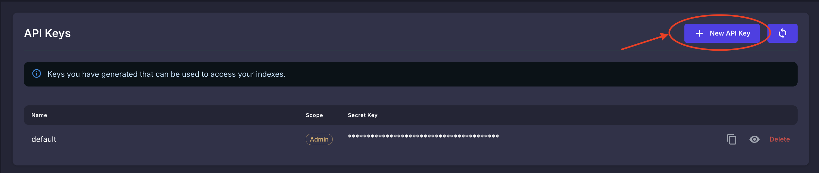 | 🛠️ Admin | Full control — create, modify, and delete indexes. | Managing infrastructure, automation scripts |